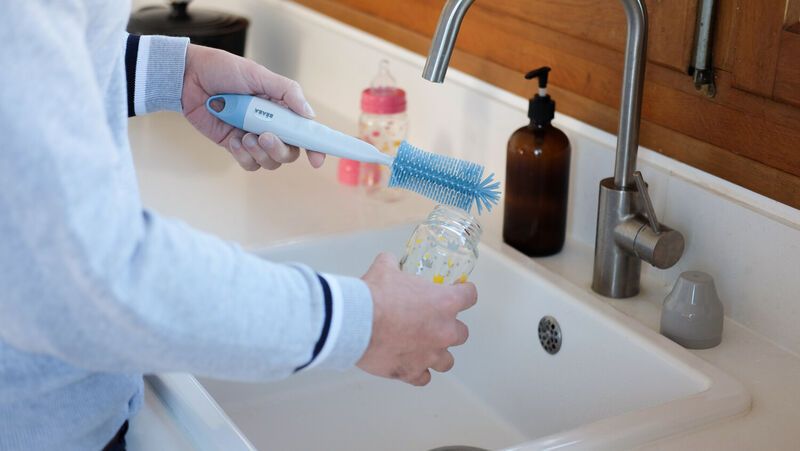 Cepillo de silicona resistente para biberones Béaba para limpiar los biberones del bebé