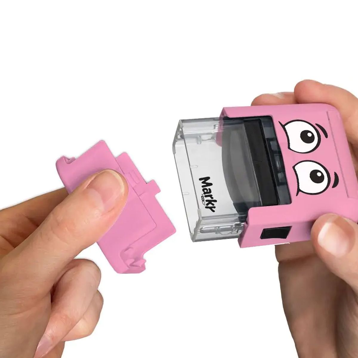 MARKY es un práctico sello de marcaje para la escuela, el deporte y el tiempo libre pensado para los niños. La tinta negra especial para textiles, que también ha sido dermatológicamente probada, puede utilizarse para marcar no sólo textiles, sino también papel, cartón y muchas otras superficies absorbentes.